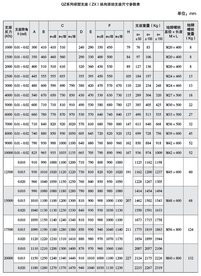 a、支座反力(豎向承載力)分為 16級:1000、1500、2000、2500、3000、4000、5000、6000、7000、 8000、 9000和10000、 12500、 15000、 17500、 20000KN。