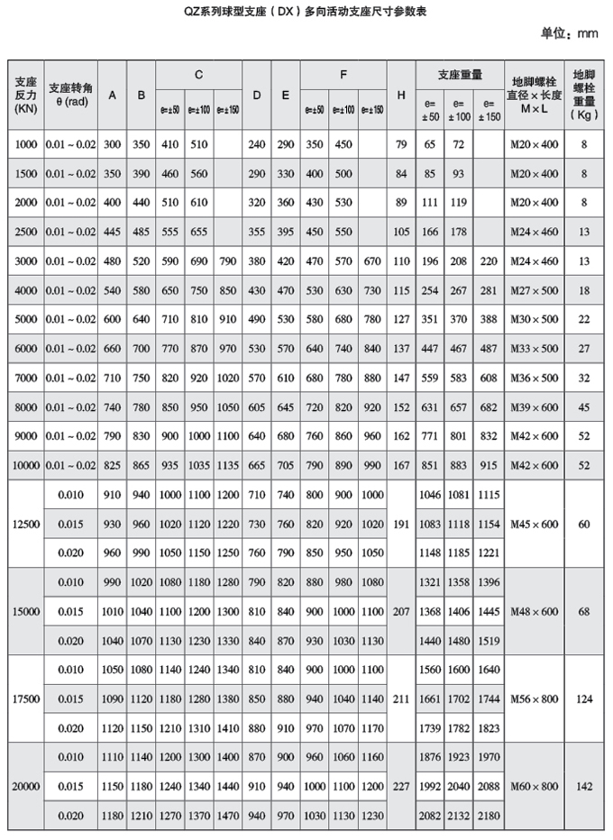 300Q—20000KN e= ± 50mm e= ± 100mm e= ± 150mm 橫橋向:(DX多向活動支座)e=±40mm 設(shè)計位移量根據(jù)工程需要可進(jìn)行變更。