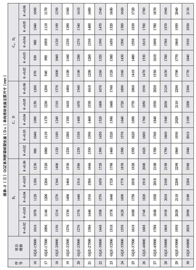 1、支座豎向承載力分為30級,1000、1500、2000、2500、3000、3500、4000、4500、5000、6000、 7000、 8000、 9000、 10000、 12500、 15000、 17500、 20000、 22500、 25000、 27500、 30000、 32500、 35000、 37500、 40000、 45000、 50000、 55000、 60000kNo